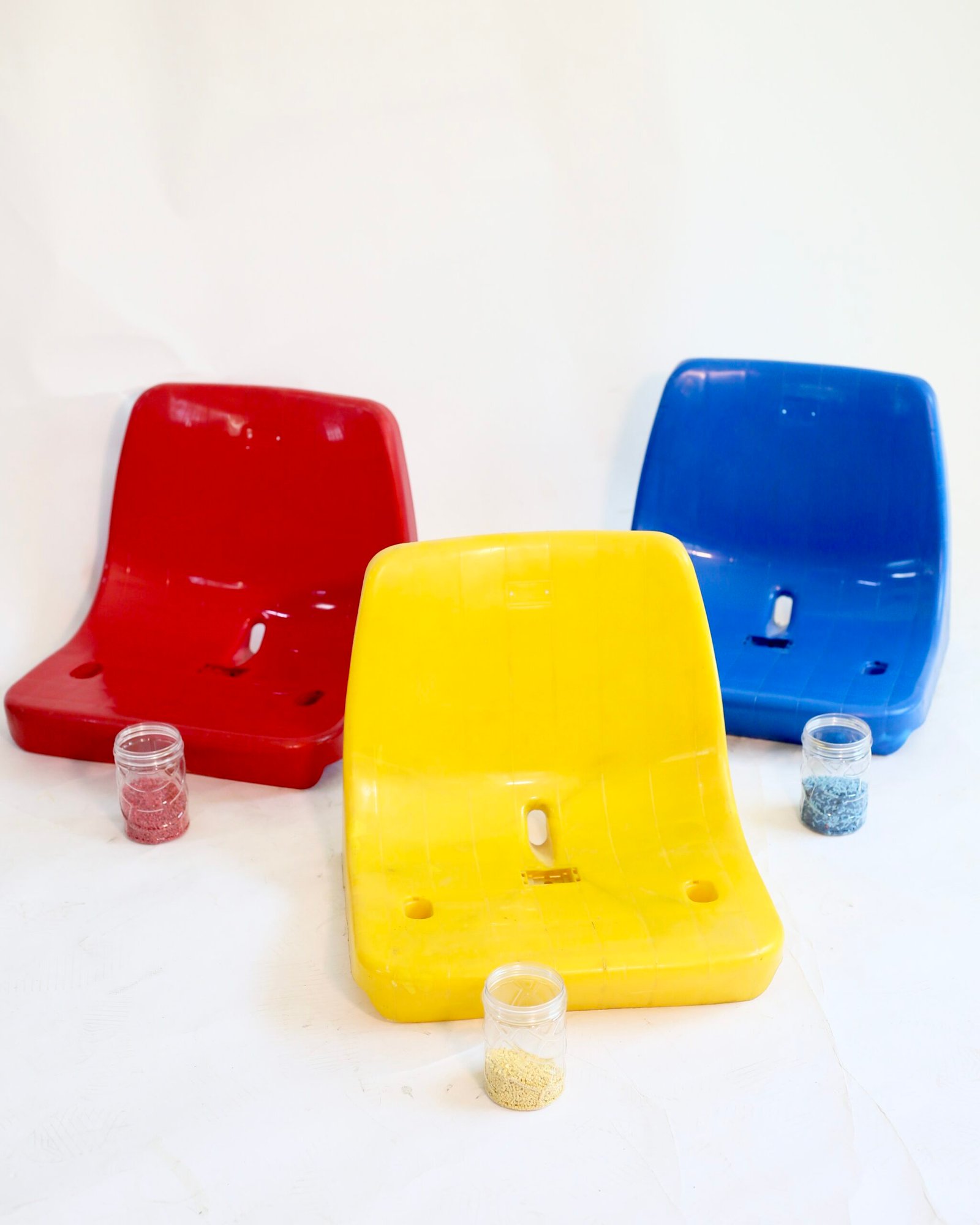 مجموعة متنوعة من الكراسي المصممة للراحة والاستدامة في البيئات التعليمية والمكتبية.